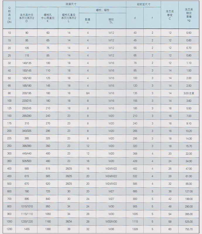 襯里法蘭蓋的規格參數