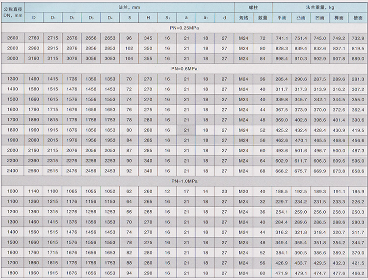 使用壓力為PN,MPa(bar)0.25、0.6、1.0、1.6、2.5、4.0、6.4。